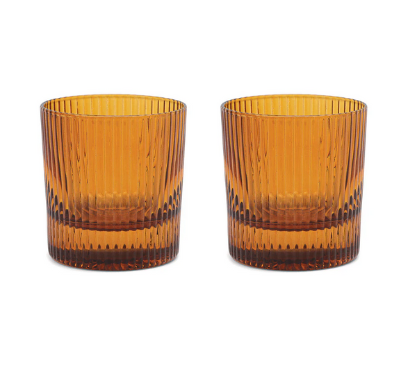 Crafted from 100% soda lime glass, each glass holds 9 fl oz and combines durability with elevated style. The amber color catches the light beautifully, while the fluted design offers texture and refinement. This set of two is made for gifting, hosting, or making everyday cocktails feel celebratory.